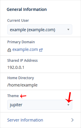 2. No painel Informações Gerais . Você deve ver uma opção de tema com um menu suspenso.