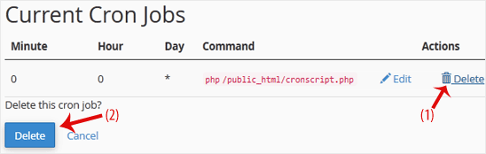 2. Em Excluir esta tarefa do cron? , clique em Excluir .