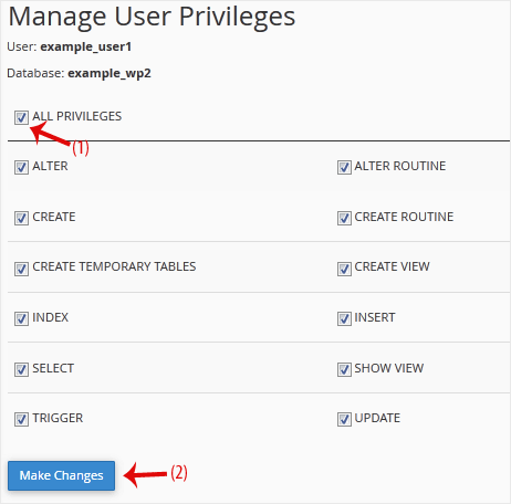 4. Clique em Adicionar . 5. Em Gerenciar privilégios de usuário . Marque a caixa TODOS OS PRIVILÉGIOS e clique em Fazer alterações .
