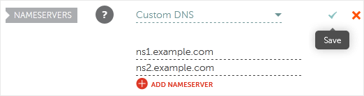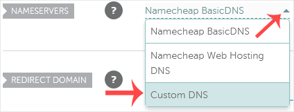 4. Role para baixo até a opção Nameservers e selecione Custom DNS no menu suspenso . 5. Digite seus servidores de nomes nos campos de texto e clique em Salvar . Observação: pode levar de 12 a 24 horas para que as alterações entrem em vigor em todo o mundo.