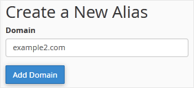 3. Em Criar um novo alias . digite o nome de domínio que deseja estacionar no campo de texto. 4. Clique em Adicionar domínio .