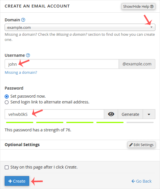 4. Em Criar uma conta de e-mail, preencha os seguintes detalhes: