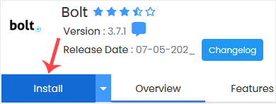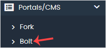 4. No lado esquerdo, localize a categoria Portal/CMS . Clique nele e depois no link Bolt que aparece. 5. Clique em Instalar . 6. Preencha os campos necessários nos campos de configuração de software :