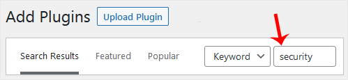 3. Use o filtro Pesquisar  para encontrar os plug-ins. Digite Segurança para encontrar plugins relacionados a ele.