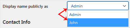 4 . Em Exibir nome publicamente como , escolha seu apelido recém-adicionado no menu suspenso.