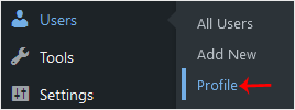 2. No menu Painel, vá para Usuários e clique em Perfil .