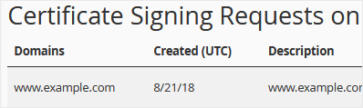 4. Em Solicitações de assinatura de certificado no servidor , você pode ver o CSR gerado anteriormente.
